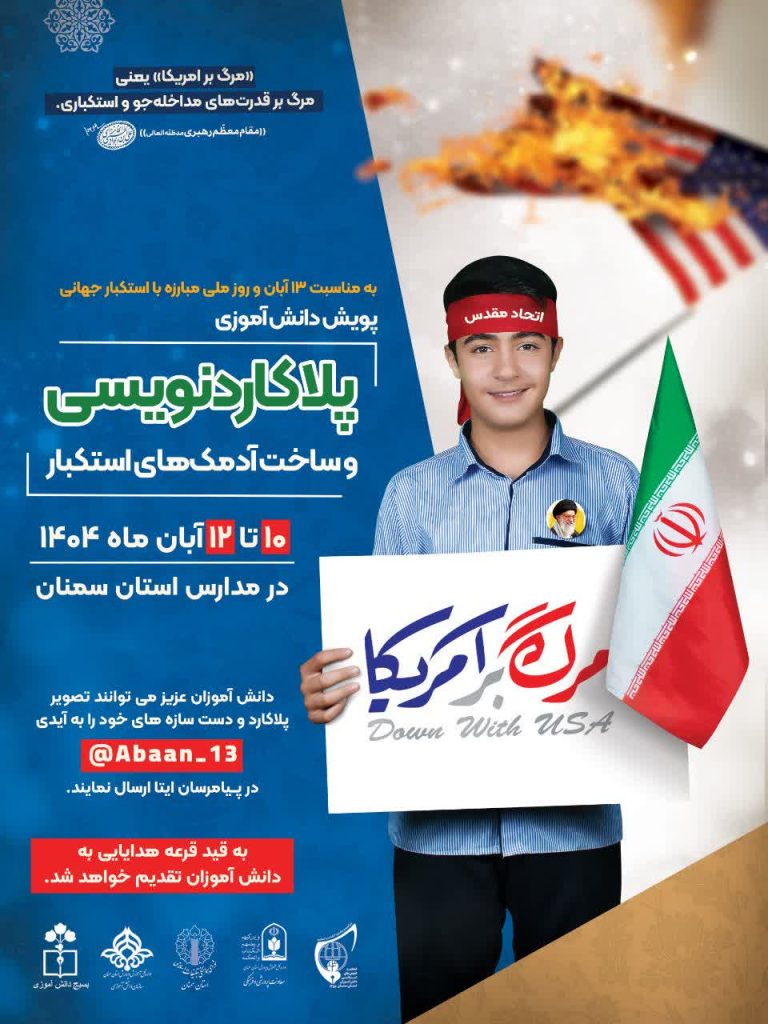شیوه نامه رویداد بزرگ پلاکارد نویسی بمناسبت یوم الله ۱۳ آبان، روز ملی مباره با استکبار جهانی ویژه دانش آموزان استان سمنانپویش