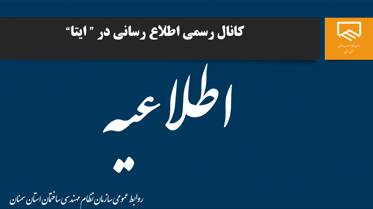 📢 اطلاعیه به اطلاع اعضا و فعالان حوزه مهندسی ساختمان می‌رساند: سازمان نظام مهندسی ساختمان استان سمنان در نظر دارد به مناسبت انتشار سالنامه ۱۴۰۵، امکان درج تبلیغات و معرفی خدمات شما را در این [...]