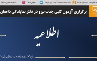 عضو محترم سازمان با توجه به درخواست شما جهت همکاری با سازمان در دفتر نمایندگی دامغان، بدینوسیله به اطلاع می‌رساند آزمون کتبی جذب نیروی آن دفتر در روز سه‌شنبه مورخ 1404/11/21 برگزار می‌گردد. محورهای سئوالات [...]
