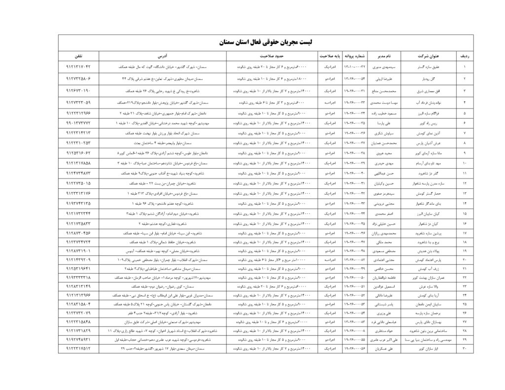 * معرفی لیست مجریان حقوقی و شرکت های طراح و ناظر حقوقی سازمان تیر ماه ۱۴۰۴