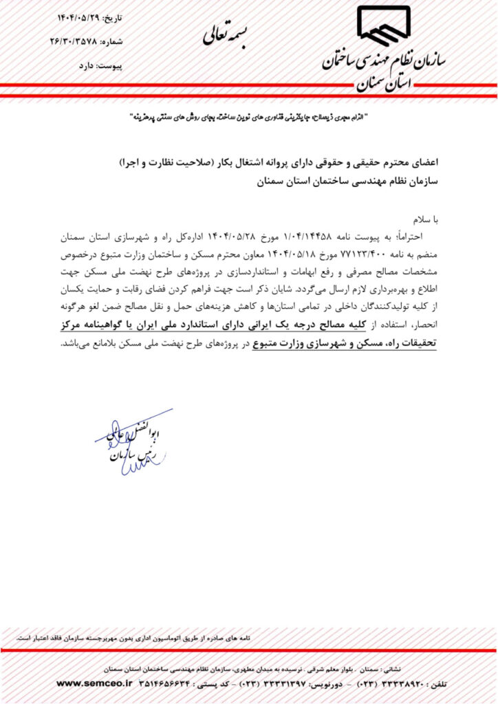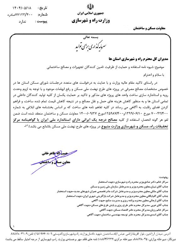 Home»نوشته‌ها»ابلاغیه ها, اخبار»* شیوه نامه استفاده و حمایت از ظرفیت تامین کنندگان تجهیزات و مصالح ساختمانی