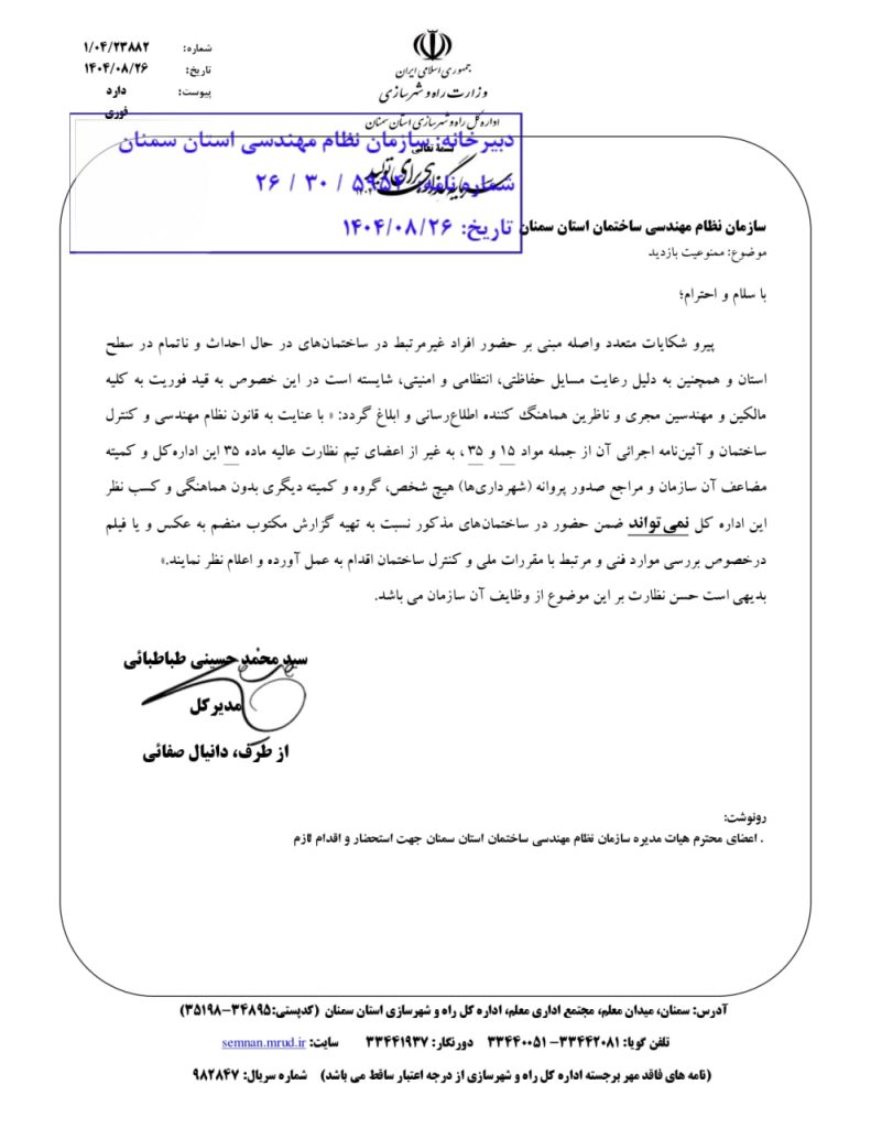 Home»نوشته‌ها»ابلاغیه ها, اخبار»ممنوعیت بازدید
