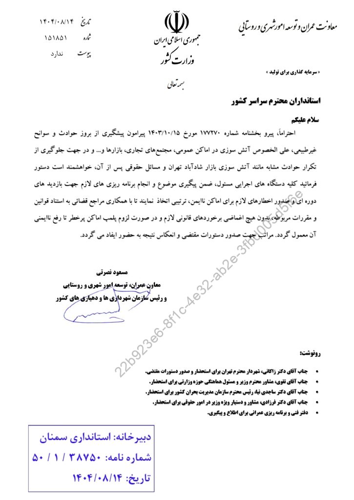 * لزوم پیشگیری از آتش سوزی در اماکن عمومی