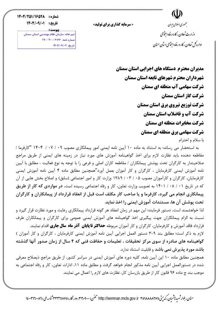 * لزوم رعایت آیین نامه ایمنی امور پیمانکاری