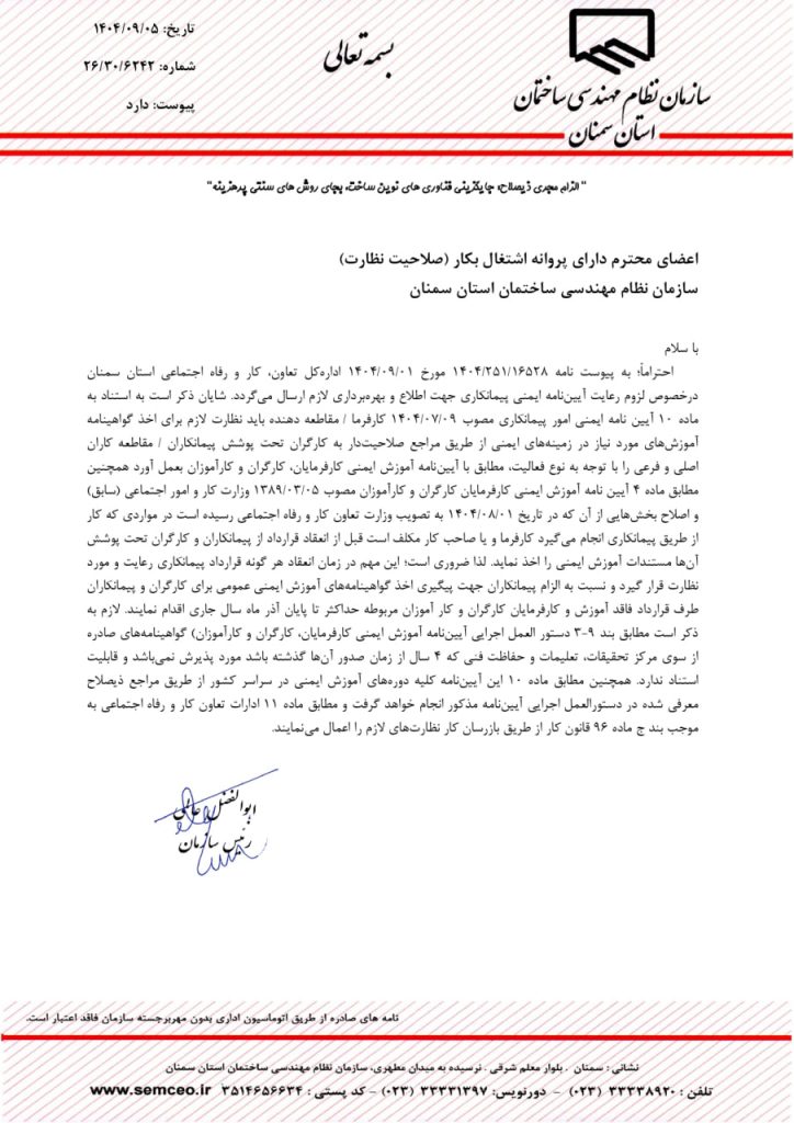 Home»نوشته‌ها»ابلاغیه ها»* لزوم رعایت آیین نامه ایمنی امور پیمانکاری