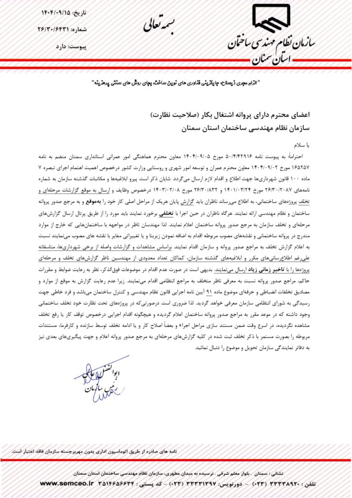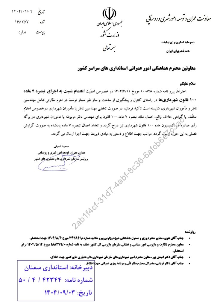 * اهمیت اهتمام به اجرای تبصره ۷ ماده ۱۰۰ قانون شهرداریها و ارائه گزارش فصلی به موقع