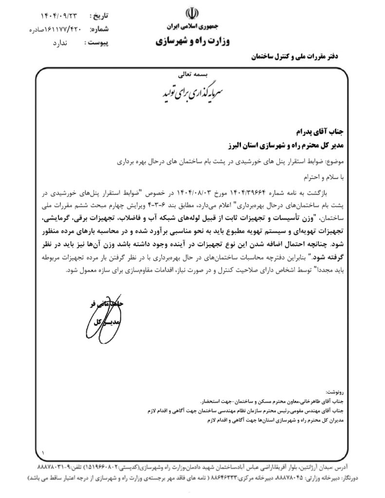 Home»نوشته‌ها»ابلاغیه ها, اخبار»* ضوابط استقرار پنل های خورشیدی در پشت بام های ساختمان های در حال بهره برداری