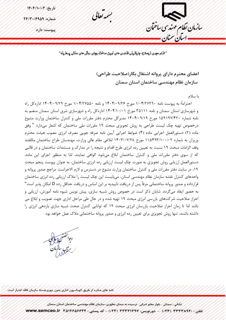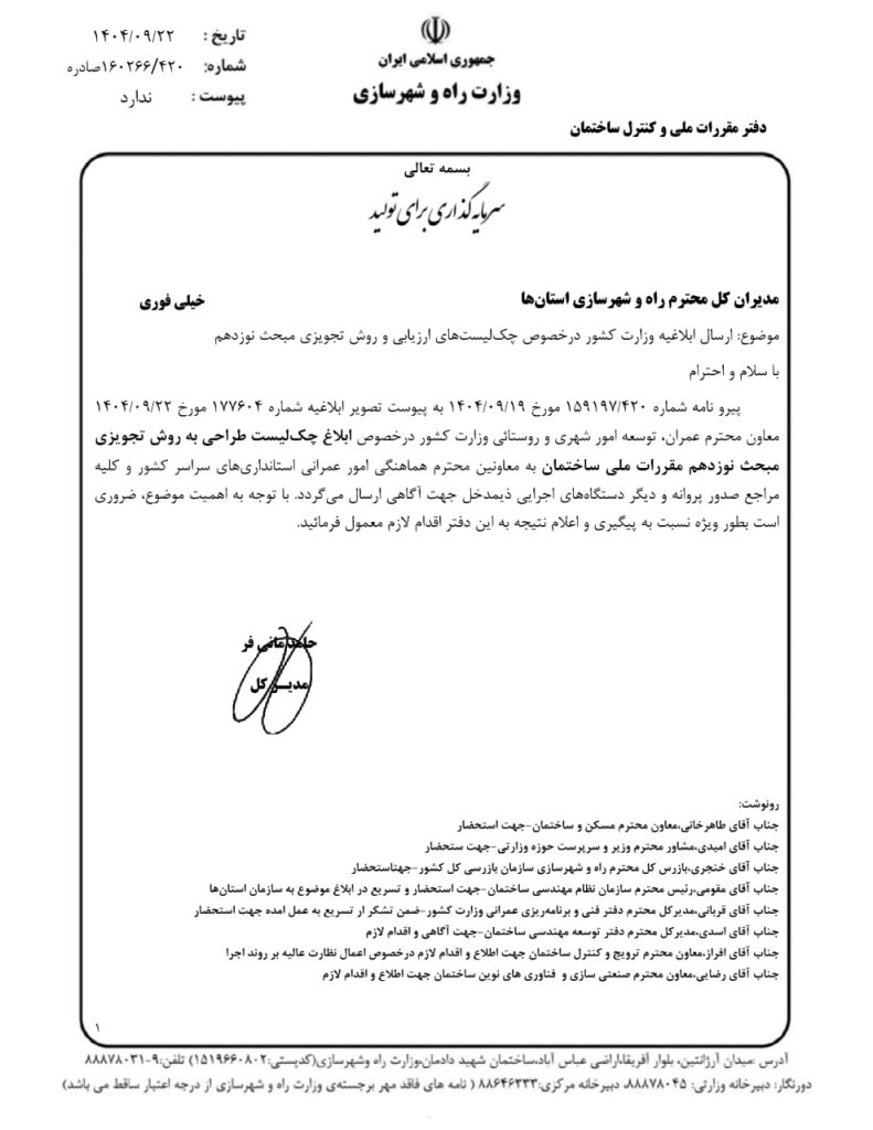 * به پیوست تهیه چک لیست طراحی تجویزی مبحث ۱۹