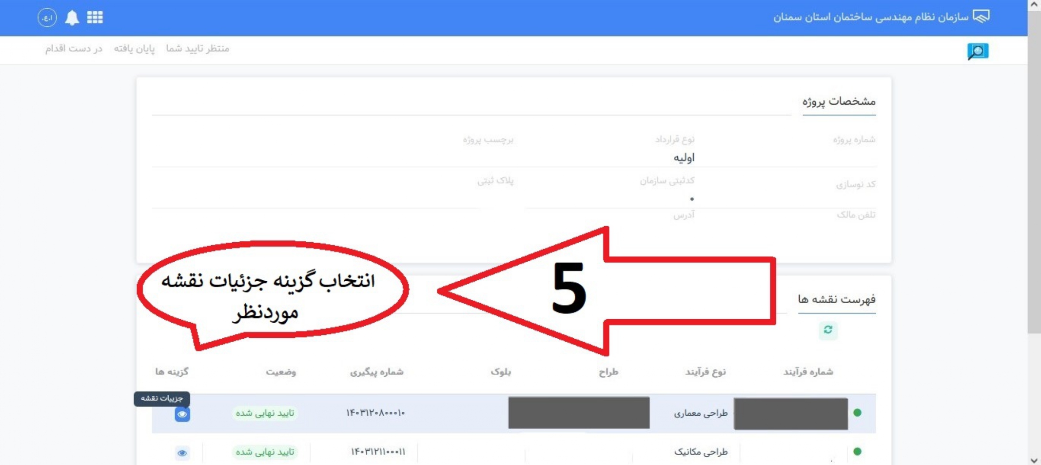 * راهنمای تصویری ناظران جهت مشاهده نقشه ها در پورتال خدمات الکترونیک