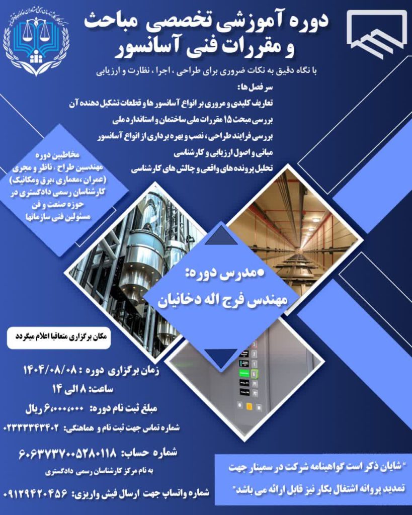 برگزاری  سمینار آموزشی مباحث و مقررات فنی آسانسور