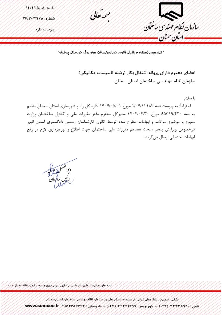 * پاسخ استعلام سوالات و ابهامات درخصوص ویرایش پنجم مبحث ۱۷ مقررات ملی