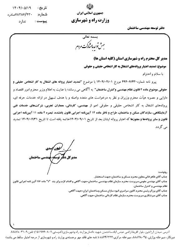 Home»نوشته‌ها»اخبار»* تمدید اعتبار پروانه های اشتغال بکار اشخاص حقوقی و حقوقی