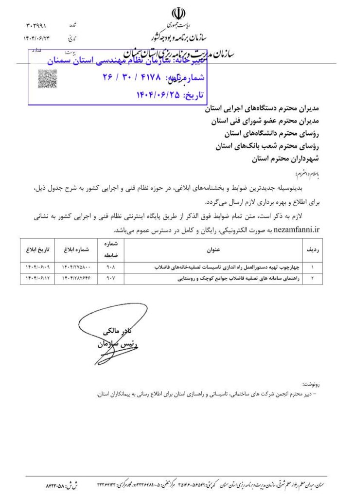 Home»نوشته‌ها»اخبار»* بخشنامه در حوزه نظام فنی و اجرایی کشور