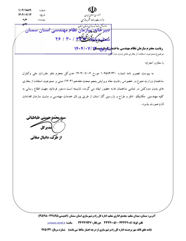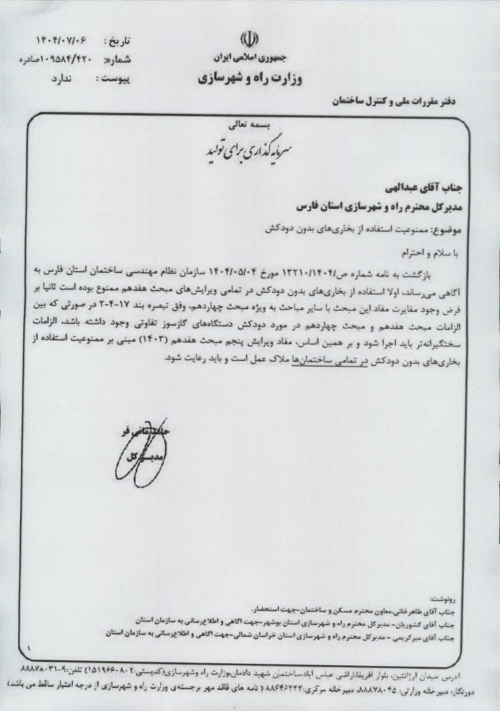 * ممنوعیت استفاده از بخاری های بدون دودکش