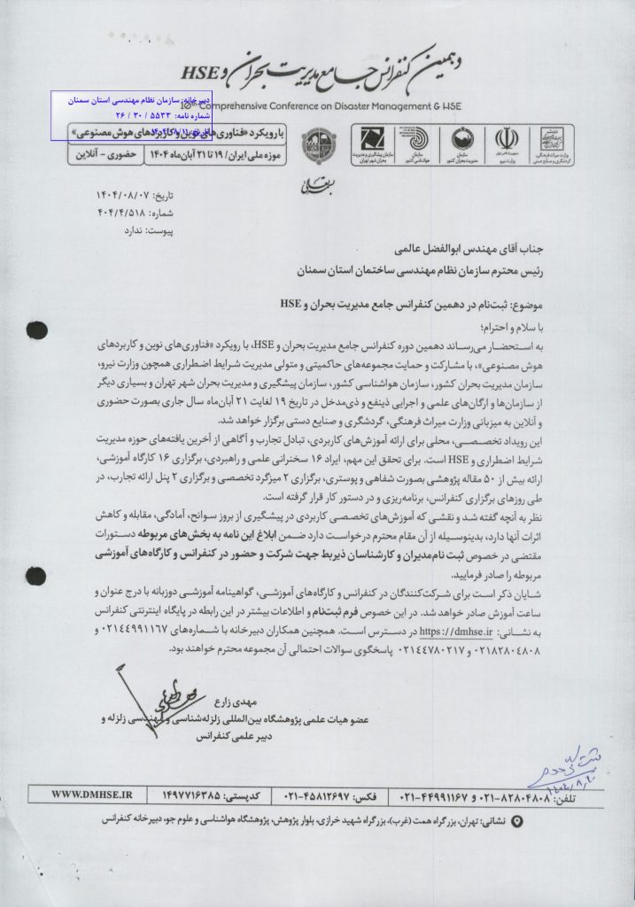 Home»نوشته‌ها»اخبار»* دهمین کنفرانس جامع مدیریت بحران و HSE