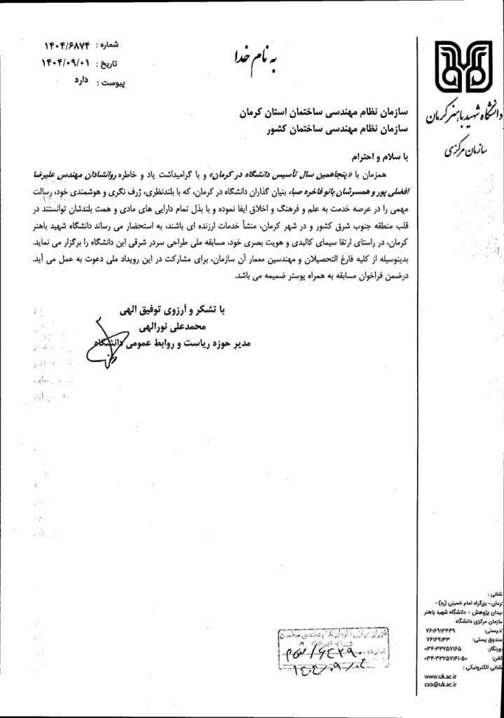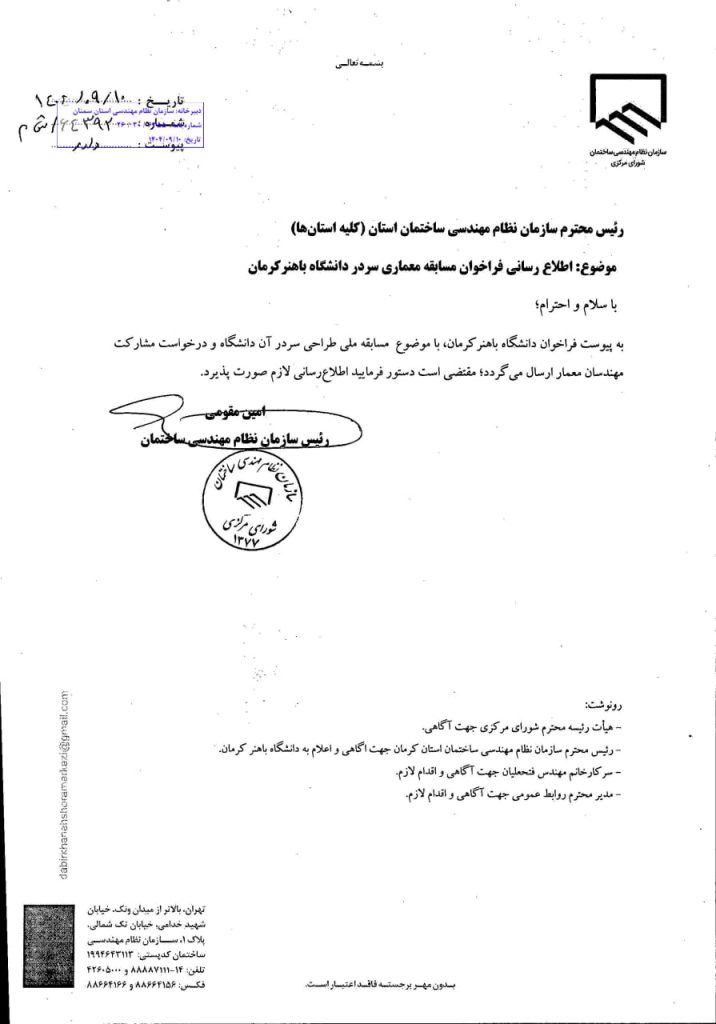 Home»نوشته‌ها»اخبار»* فراخوان مسابقه معماری سردر دانشگاه باهنر کرمان