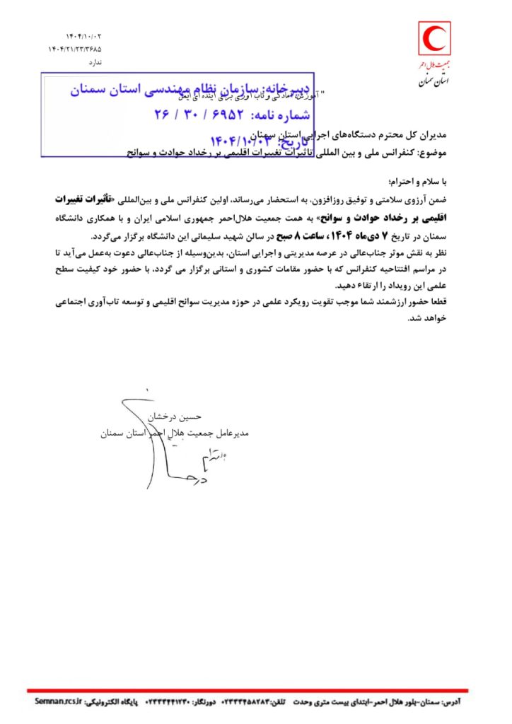 * کنفرانس ملی و بین المللی تاثیرات تغییرات اقلیمی بر رخداد سوانح و حوادث