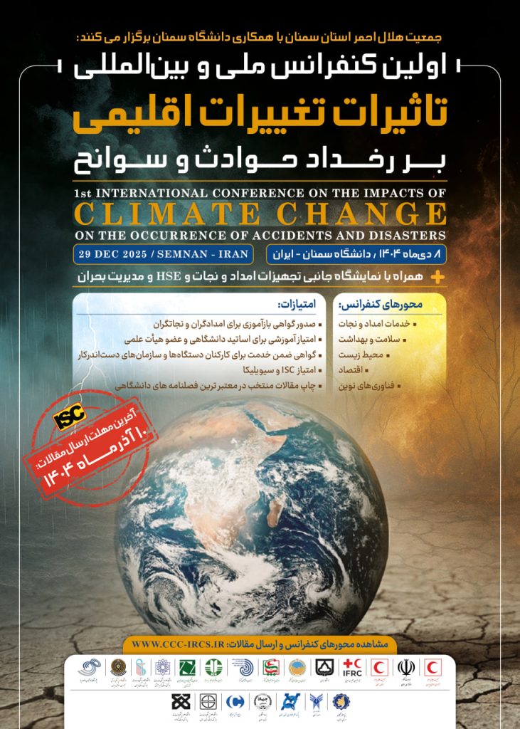 Home»نوشته‌ها»اخبار»* کنفرانس ملی و بین المللی تاثیرات تغییرات اقلیمی بر رخداد سوانح و حوادث