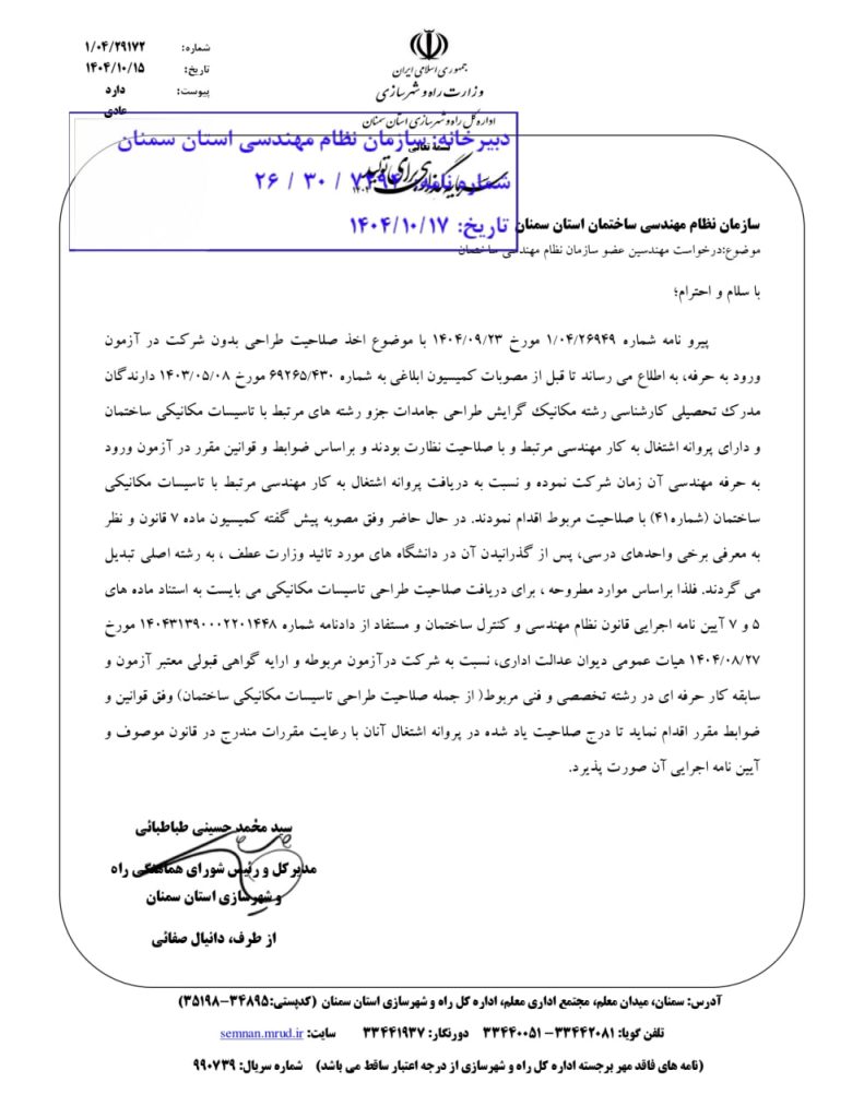 Home»نوشته‌ها»اخبار»* درخواست مهندسین عضو سازمان