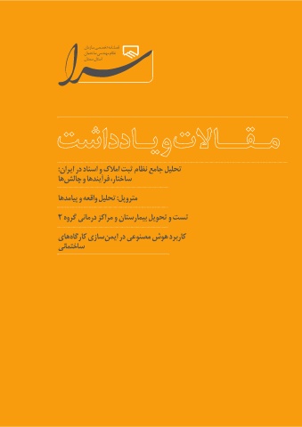 تحلیل جامع نظام ثبت املاک و اسناد در ایران: ساختار،فرآیندهاوچال شها متروپل :تحلیل واقعه و پیامدها تست و تحویل بیمارستان و مراکز درمانی گروه 2 کاربرد هوش مصنوعی در ایم نسازی کارگاههای ساختمانی