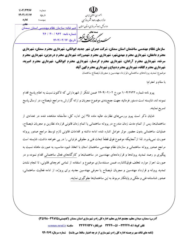 * تمدید پروانه های ساختمانی، قرارداد مهندسین و مجریان ذیصلاح ساختمان