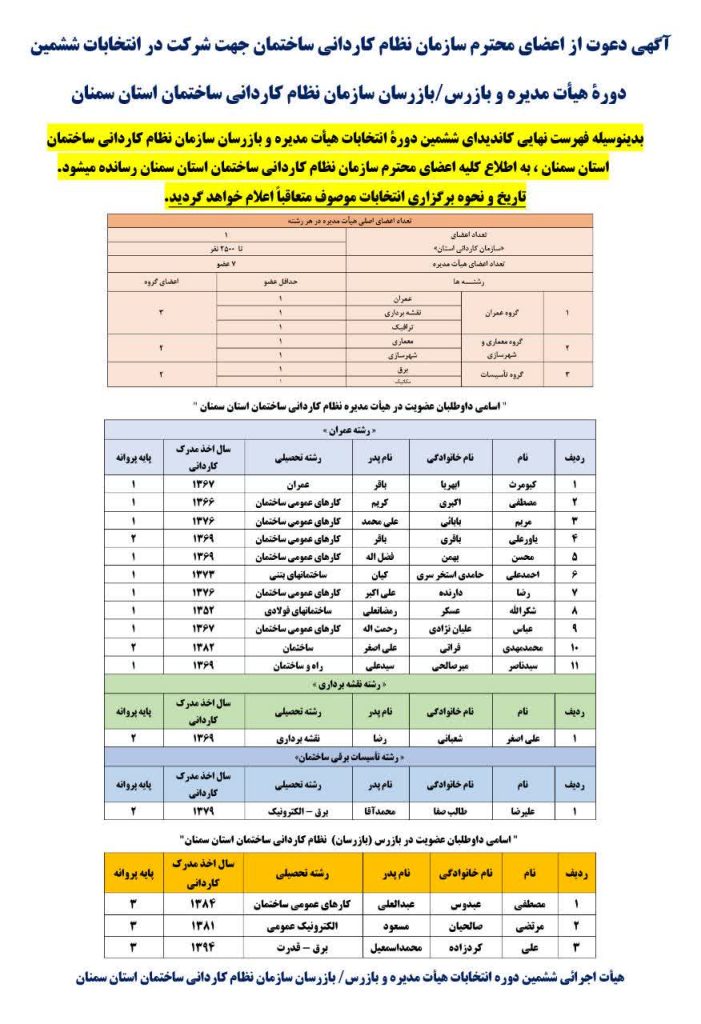آگهی دعوت از اعضای محترم سازمان نظام کاردانی ساختمان جهت شرکت در انتخابات ششمین دوره هیات مدیره