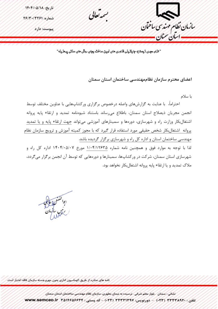 * عطف به غیر قانونی بودن برگزاری هر گونه دوره و سمینار بدون مجوز این اداره کل