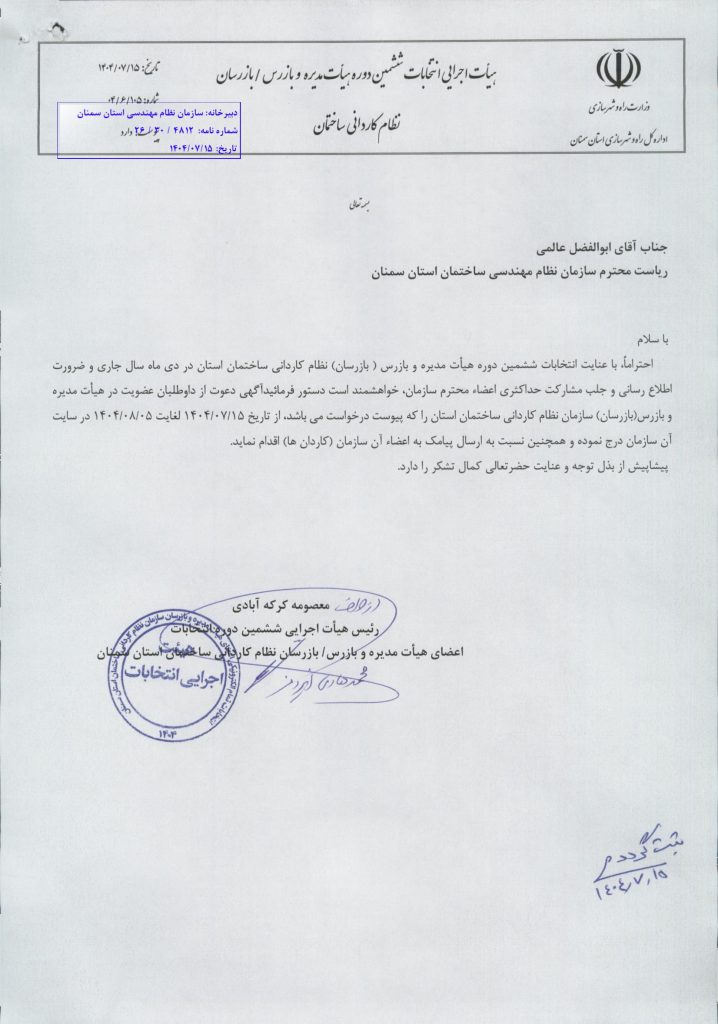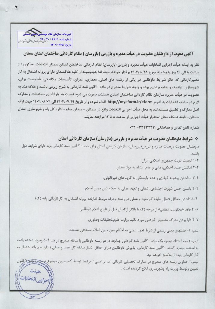 Home»نوشته‌ها»اخبار, اخبار ویژه»* داوطلبان عضویت در هیات مدیره و بازرسان سازمان نظام کاردانی