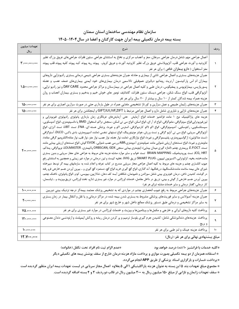 * بسته بیمه درمان تکمیلی بیمه ایران جهت کارکنان و اعضا در سال۱۴۰۴-۱۴۰۵