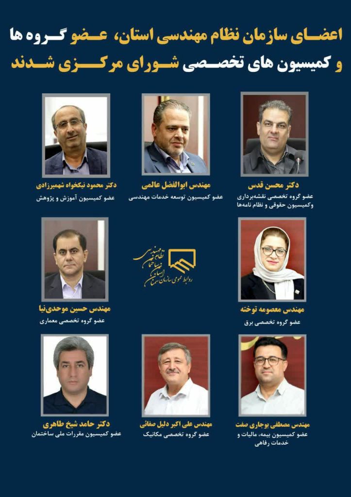 * اعضای سازمان نظام مهندسی استان، عضو گروه ها و کمیسیون های تخصصی شورای مرکزی شدند